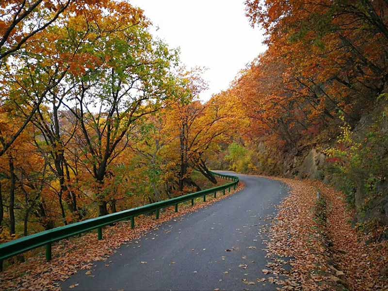 全长7000米,因山岭有十八道弯而著称。从春分时节起,这里冰凌花、杏树花、山樱花、梨花相继开花,奏响十八弯春之交响曲;秋天,以漫山红叶为主调的五花山则成为天女山的主旋律。